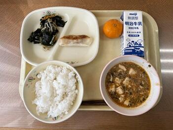 ごはん 麻婆豆腐 焼き餃子 もやしのナムル 冷凍ミカン