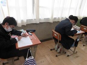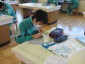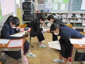 平家物語の「弓流」のところのまとめで、2人組で音読をしていました。ちょっと難しいところですが、頑張って取り組んでいました。