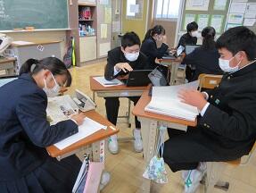 中部地方の産業についてタブレットや資料集を使って調べていました。みんなよく調べられていました。