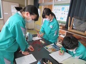 階段の照明器具がどのような回路になっているのかを実験を通して確かめていました。なかなか難しそうでしたが、みんな真剣に考えて実験していました。