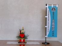 (玄関に小さな門松が) (国旗掲揚塔から 今日の青空)