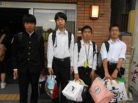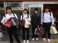 16:30、次々と各班が旅館に到着しました。それぞれ大きな土産袋をもって満足した表情で、元気です。最初の班から最後の班が到着する間はなんと5分程度。さすがタクシーの運転手さんです。何事もなく安全に生徒を誘導してくれました。感謝です。
