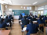 【海外派遣説明会】 昼休みの時間、「海外派遣事業説明会」が行われました。町関係者から趣旨の説明と海外(フィジー共和国)の説明を聞きました。また、昨年度参加した3年生から体験談を聞きました。本年度8月18日から23日までの4泊6日で実施されます。希望者は申込書を早めに担任に提出ください。