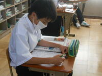 3年1組「技術」「ソーラーラジオ」の作成をしていました。ソーラーシステムでラジオが聞けるもので、細かな作業です。