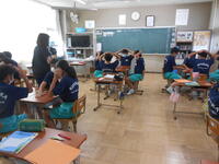 1年1組「英語」本文を正確に暗唱するため、ペアで確認していました。最後には先生に確認してもらいました。
