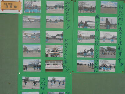 【校内散策】1年生の廊下に体育祭の活動の様子が掲示されていました。生徒の顔は真剣さと笑顔でいっぱいでした。