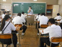 【朝の読書】本校の特色ある活動の一つに「朝の読書」があります。登校後の10分間、全員一斉に実施します。そして、年間1万ページ以上読んだ生徒には表彰しています。この取り組みの成果で国語の点数は常に県平均を上回っています。