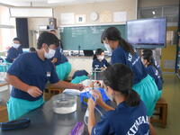 2年2組「理科」呼吸運動について画像や実験器具で理解していました。