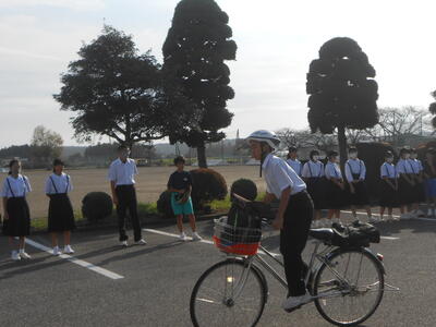 【自転車点検】今日は輪業組合の方やさくら警察署、町役場の方々の協力を得て「自転車点検」を実施しました。本校ではほとんどの生徒が自転車通学です。自転車に不備があると、いくら規則を守って通学しても事故につながります。点検の結果、約25%の生徒に不備が発見され、多くはタイヤの摩耗でした。今日の点検の結果を重視し、早めの修理をお願いします。