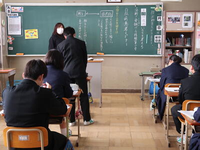 「緊急事態宣言」が発令され、少しずつ感染者数が減少していますが、まだまだ油断のできない状況です。3年生の教室に「合格したらやりたいこと」という掲示物があり、多くの生徒が「友達と遊びに行きたい」と書いてありました。ずっと我慢しているのでしょう。県立高校入試まで体調管理も重要ですね。