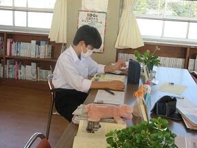 昨日の2組の授業と同じく、体に不必要なものは、どのように処理されるのかということで、腎臓と肝臓の働きについて学習していました。生徒たちは真剣に取り組んでいました。