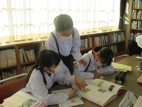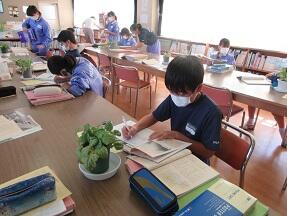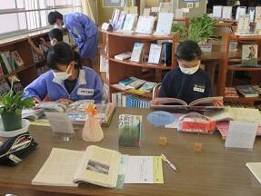 図書館で調べようということで、教科書に出ている戦争についてわからないことについて調べていました。原子爆弾、大本営、ゲートル・・・などを意欲的に調べていました。