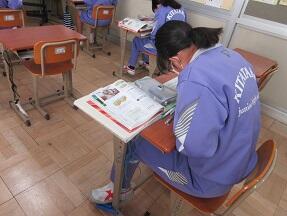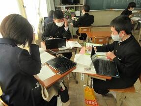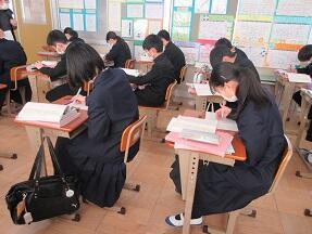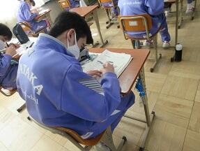 期末テストのふりかえりを行っていました。生徒たちの表情は様々でした。