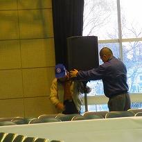 ●夕方、ユウ燕さんの記念コンサートのための音響(スピーカー)設置のため、同窓会役員の金氏さんと音響担当のせんばさんが来校しました。
