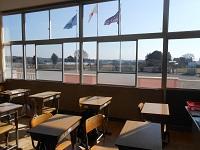 【教室拝見】 空き教室を覗いてみると、窓が開いて空気を入れ換えていました。さすがです。この時期は換気が重要です。