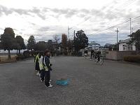 昨夜からの雨で路面が滑りやすくなっていました。下校時刻も薄暗く、タスキを着用して安全に気をつけて登下校をお願いします。