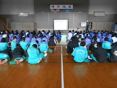 【保護者説明会】12月6日(金)18:00より、来年度入学予定者の「中学校入学説明会」を行いました。寒い中、時間通りにお集まりいただいた保護者の皆様に感謝いたします。今後もお子様が安心して生活できる学校をつくりあげていきたいと思いますので御協力をお願いします。なお、御不明な点につきましては直接中学校へお問い合わせください。(担当 教頭)