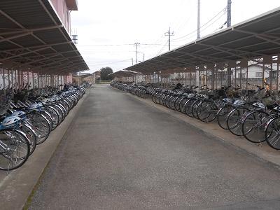 登校後はヘルメットを荷台に縛りつけて整然と置いています。