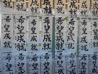 【校内散策】冬休みの課題の一つ「書き初め」です。各自がていねいな筆さばきで書かれています。廊下に掲示されていますので、三者面談の際にどうぞご覧ください。