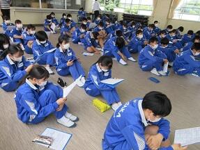 2年生は5時間目に、6月1日(火)に実施する戦争体験講話に向けて、「日本がアジアで行った戦争」のDVDを視聴していました。こちらも、とても真剣な表情で見ているのがとても印象的でした。