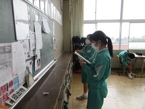 今日の朝は、2年1組が当番であいさつ運動が実施されました。みんな、あいさつがよくできているように感じました。
