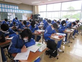 北方領土、竹島、尖閣諸島などの領土問題について学習していました。なかなか難しい問題だと感じましたが生徒たちは真剣に取り組んでいました。