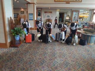修学旅行最終日の朝食です。全員元気で迎えられた朝に感謝です。昨日の朝より疲れていると見える生徒が増えているようで感じます。