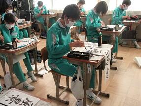 「車窓風景」の清書に取り組んでいました。なかなかの作品が出来上がっていました。
