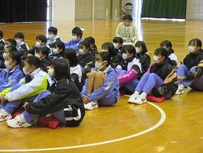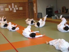 柔道の受け身を、2人組で低い位置からまわってやっていました。だんだん畳みを打ついい音になってきました。