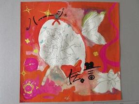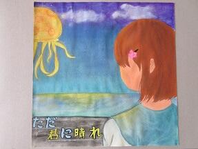 3年1組の完成したCDジャケットを紹介します。今後完成した作品については、後日紹介したいと考えています。またCDジャケットの写真を撮っているときに2名の3年生女子が見ていたのでパチリ。本日のベストショットです。
