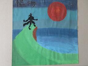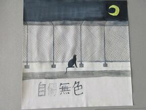 鳥獣人物戯画の絵にふさわしい英語の台詞を2人組で考えていました。なかなかおもしろそうな授業でした。