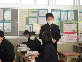 今日の3時間目に、2年3組の社会の授業に町の指導主事の先生を招いて、研究授業を実施しました。以前にもお知らせしましたが、これは教職2~5年目までの教員を対象に授業力の向上を目指して実施してるものです。nねらいと評価の関係性、ふりかえりの書かせ方、メインの活動では何を気づかせたいのかなど勉強になったようです。