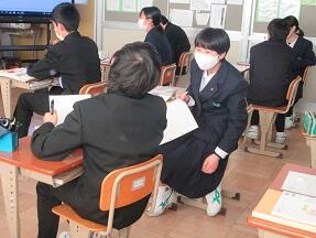 核兵器禁止条約を日本は批准すべきかどうかをみんなで考えていました。いろいろな意見が出されて、興味深い授業でした。生徒たちはよく考えていました。