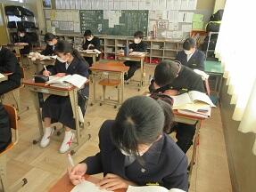 テスト対策で、文法、歴史的仮名づかい、漢字の音訓などの復習をやっていました。みんな真剣に取り組んでいました。