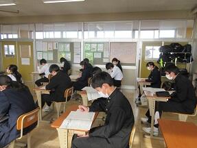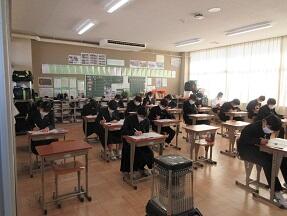 高校入試の過去問を解いていました。みんなとても集中して取り組んでいました。一般入試まで1か月を切りました。最後まで頑張れ!