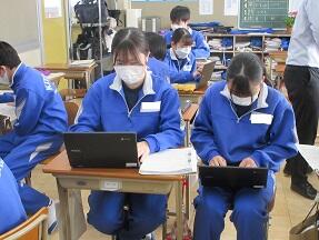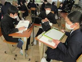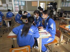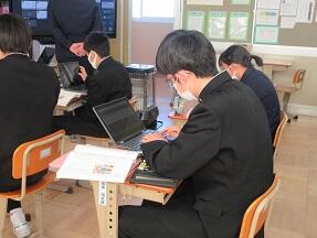 本文理解と3年間を締めくくる言葉を考えてスライドづくりをする授業が展開されていました。どんなスライドができるのか楽しみです。