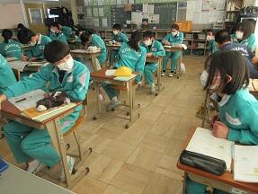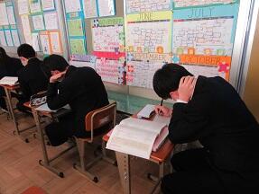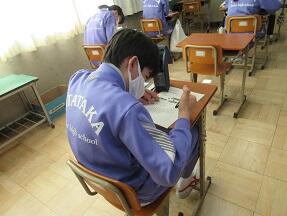期末テストのふりかえりを行っていました。生徒たちの表情は様々でした。