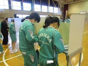 今日の5校時に、生徒会役員選挙立会演説会が行われました。立候補者はみんな堂々と自分の主張を述べていました。その後投票が行われました。