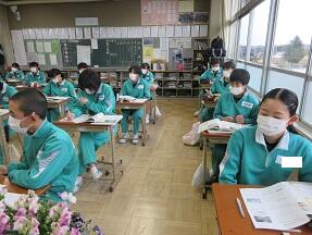 本時の単語の発音練習をした後に、本文の理解に向けて周りの友達と話し合っていました。みんなとても活発に活動していました。