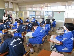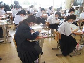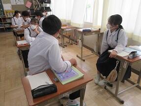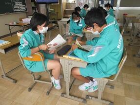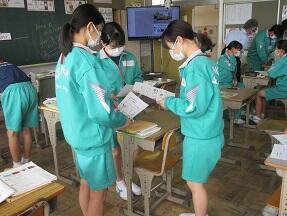 私服をもってきて、材質や洗濯方法などの表示を正しく読み取る活動を行っていました。