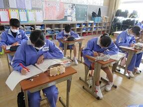 「1枚のハガキに想いを込めて」の学習で、下描きが終わった順に着色に取りかかっていました。
