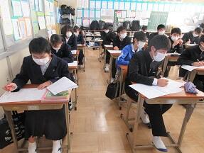 テスト返却と、振り返りを実施していました。生徒たちの表情は様々でした。