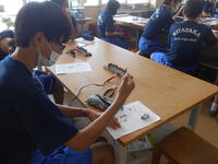 2年2組「技術」清流ダイオードーの取り付ける方法について学んでいました。この後「ラジオ」の作成になるようです。
