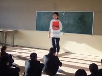 教育実習生の最後の実習日となりました。朝の会で健康観察をしています。教室では、生徒は上着を着ないで生活しています。若さですね。