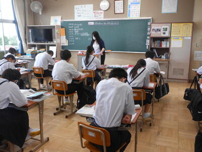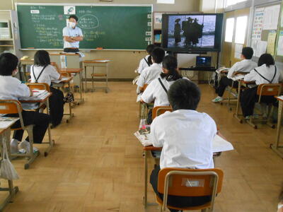 【授業参観】1年3組「社会」教育実習生の「研究授業」です。4週間、授業や部活動、給食指導等、様々な活動を生徒と一緒に取り組んでいただき感謝いたします。
