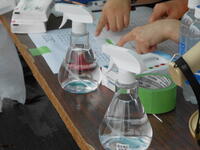 3年3組「理科」酸性やアルカリ性のもとになるものを実験を通して調べていました。実験成功でした。
