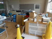 【高根沢町学校ICTネットワーク整備工事】夏休みに入り、「ICTネットワーク整備」の工事が毎日行われています。この工事は、生徒一人一人が各教室でタブレットを使用できる環境を整えるための工事です。工事している方も暑そうでした。