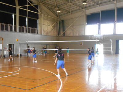 バレーボール部は対人パスの練習を行っていました。