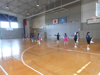 バスケットボール部はフットワークの練習を行っていました。