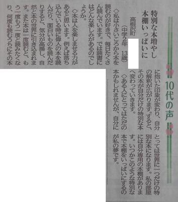 【新聞掲載】昨日の下野新聞の「10代の声」に本校生徒の感想が掲載されていました。